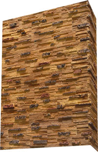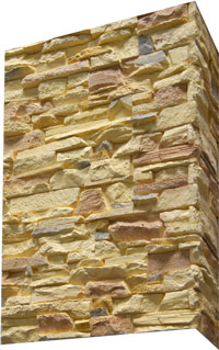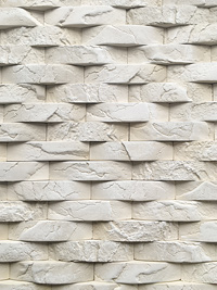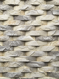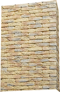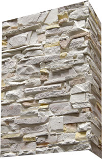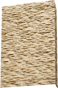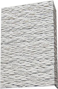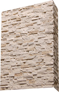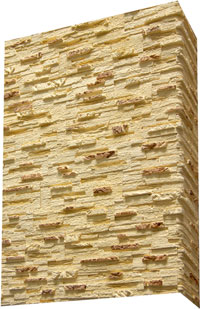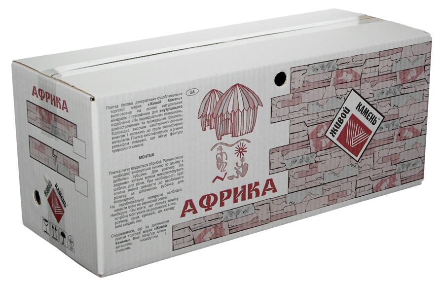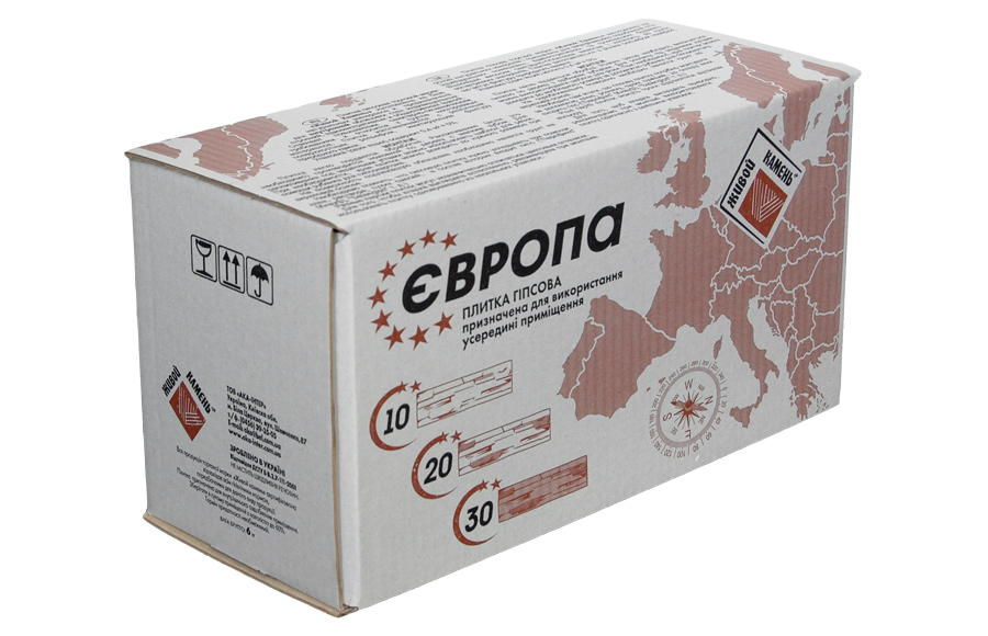 Плитка гіпсова для внутрішніх робіт. Імітує фактуру природного каменю. Краї плитки мають зрізи під кутом 45°, завдяки яким плиткою можна облицьовувати кути. Розмір плитки:
